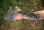 Power and aesthetics combine to make an epic tomahawk. The Hammer Hawk is anything but a normal tomahawk. Throughout the design process, each feature was carefully thought out. It’s a full-tang, 3/8” thick piece of 1075, so it is not meant to be a lightweight ax. The 4.5" cutting edge is large enough to perform chopping tasks that most smaller hatchets will not accomplish. The hammer on the back end is also hardened to be used when you need to smash instead of cut. The thick Green Canvas Micarta handles are nicely rounded and go most of the way up the tang to provide for multiple grip options.